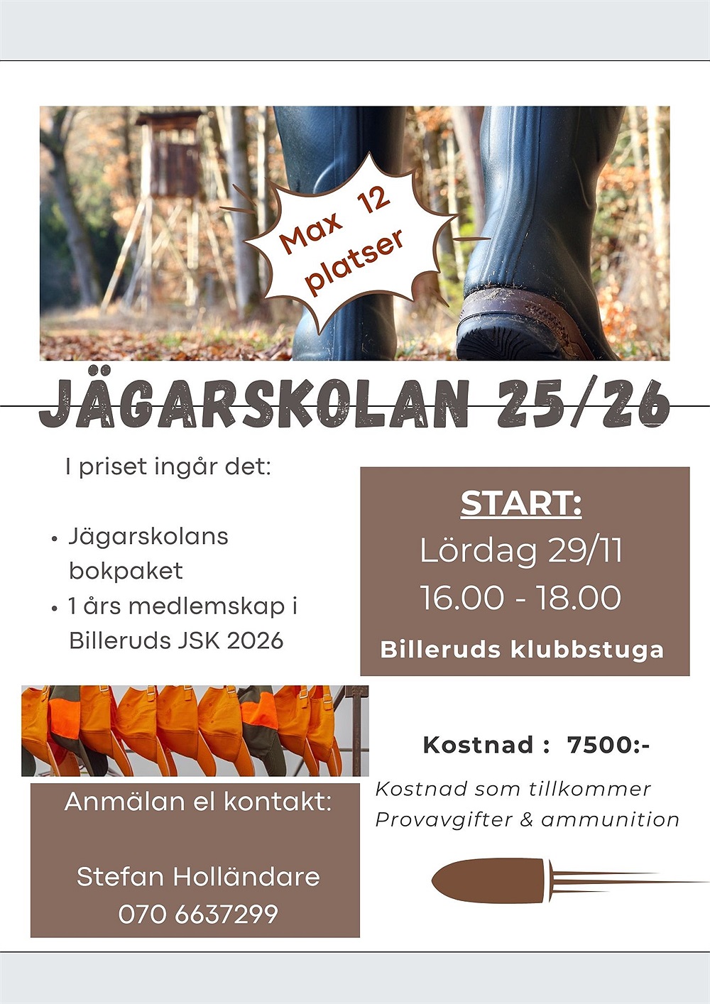 Max 10 st, först till kvarn. Medlemmar i Billeruds JSK har förtur men ni andra kan anmäla er.